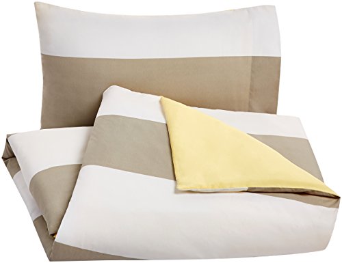 Amazon Basics - Set copripiumino in microfibra, 135 x 200 cm, Grigio a strisce, reversibile (Reversible Grey Stripe)