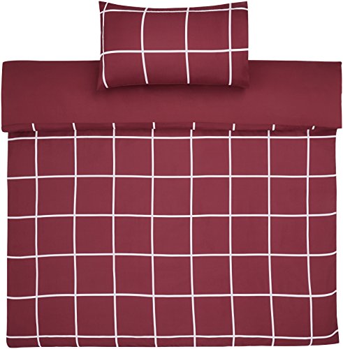 Amazon Basics - Set copripiumino in microfibra, 135 x 200 cm, Motivo a scacchi bordeaux (Burgundy Simple Plaid)