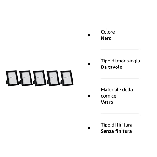 Amazon Basics - Cornice per foto - 13 x 18 cm, Rettangolare, Nero, Confezione da 5