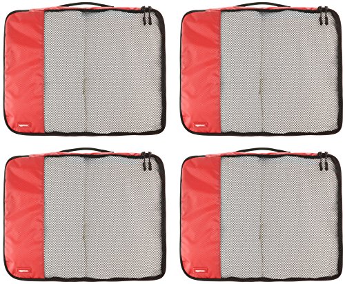 Amazon Basics - Set da 4 cubi organizzatori, misura grande, Rosso