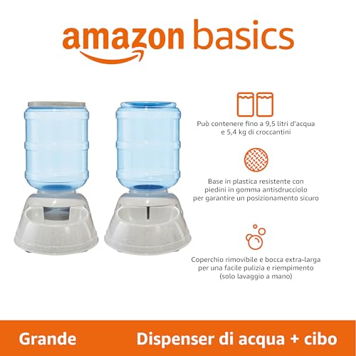 Amazon Basics Dosatore di cibo e acqua per animali domestici, Misura grande, Grigio