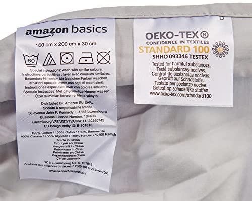Amazon Basics 'Everyday' Lenzuolo con angoli matrimoniale, in 100% cotone, Grigio chiaro 160 x 200 x 30 cm