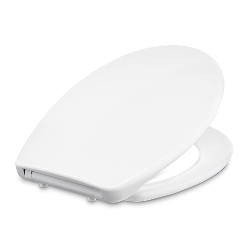 Amazon Basics - forma di O Sedile WC in urea, resistente, con chiusura ammortizzata e sgancio rapido, dimensioni universali, Bianco, 37 x 42.5 cm