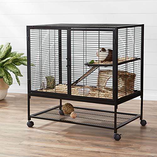 Amazon Basics - Gabbia metallica a 1 piano per animali domestici di piccola taglia, con ruote