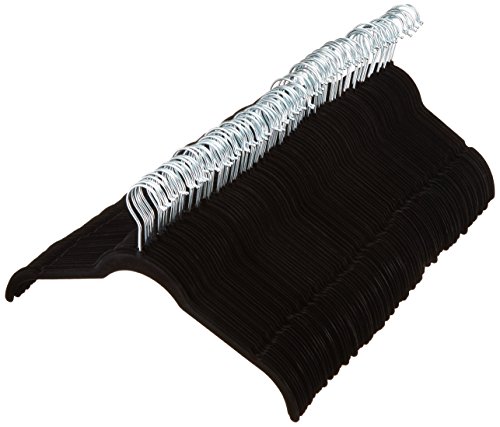 Amazon Basics Grucce Con Pinze Per Gonne E Pantaloni, Rivestite In Velluto, Confezione Da 24, Nere & Gruccia In Velluto Per Abiti E Camicie, 100 Pezzi, Nero