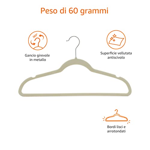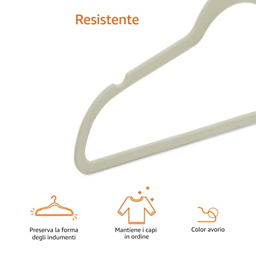 Amazon Basics - Gruccia in velluto con portapantaloni, 50 pezzi, Avorio