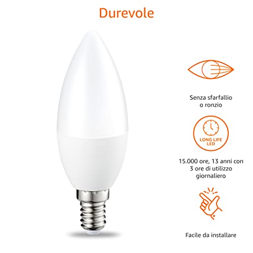 Amazon Basics - Lampadina piccola a candela, a LED, attacco Edison E14 (SES), 5,5 W (equivalente a 40 W), luce bianca calda, non dimmerabili, confezione da 2