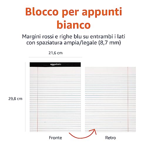 Amazon Basics Legal/a righe larghe, 12 confezioni da 50 fogli per tampone 8.5-Inch by 11.75-Inch, bianco, Letter