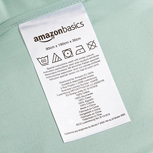 Amazon Basics - Lenzuolo con angoli king, in rasatello di cotone 400 fili, Verde acqua 180 x 200 x 30 cm