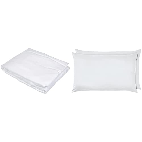 Amazon Basics Lenzuolo con angoli in microfibra, 140 x 200 x 30 cm, Bianco brillante & Federe in poliestere, 50 x 80 cm, Set di due Bianco brillante