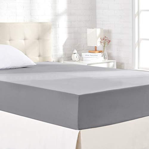 Amazon Basics - Lenzuolo con angoli in microfibra di prima qualità, 140 x 200 x 30 cm, grigio scuro