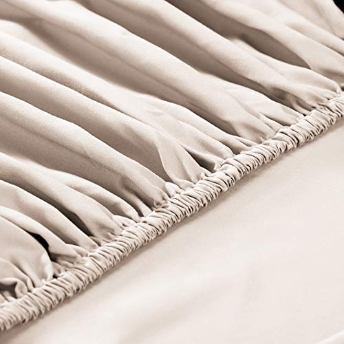 Amazon Basics - Lenzuolo con angoli in microfibra di prima qualità, 180 x 200 x 30 cm, panna
