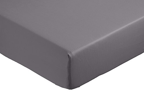 Amazon Basics - Lenzuolo con angoli singolo, in rasatello di cotone 400 fili, Grigio scuro 90 x 190 x 30 cm