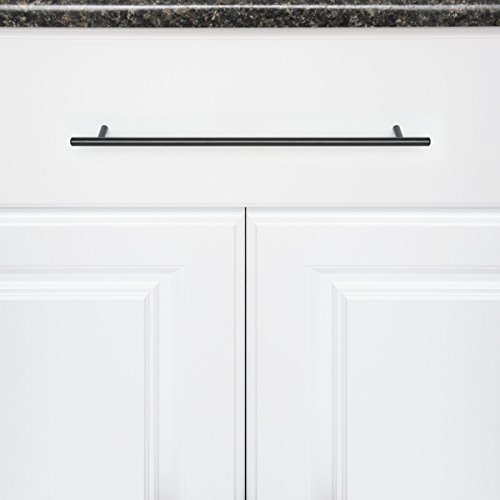 Amazon Basics - Maniglia a barra per mobili, stile europeo (diametro 0,95 cm), Lunghezza 31,1 cm (interasse: 32,08 cm), Nero uniforme, Confezione da 10