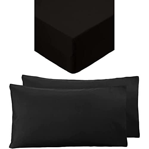 Amazon Basics Microfibre Fitted Sheet, Single, Black and Amazon Basics Microfiber Pillowcases, Black - Set of Two