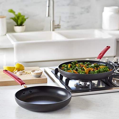 Amazon Basics - Set di 2 padelle, con rivestimento anodizzato, da 24 e 28 cm, rosso