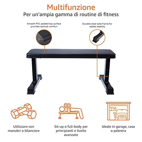 Amazon Basics, Panca per esercizi con pesi piatti, colore nero
