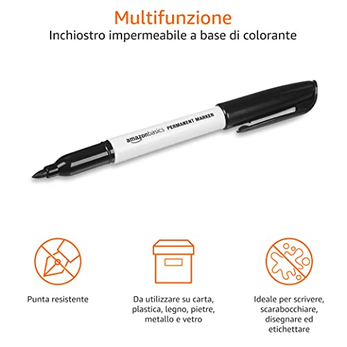 Amazon Basics - Pennarelli indelebili, confezione da 24 pezzi, Nero