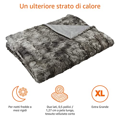Amazon Basics - Plaid leggero in pelliccia sintetica copriletto, 150 x 200 cm, grigio