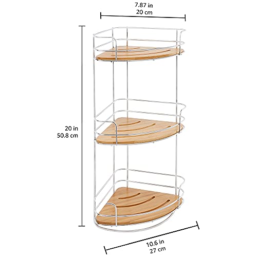 Amazon Basics - Portaoggetti ad angolo da appendere in doccia con 3 ripiani in bambù