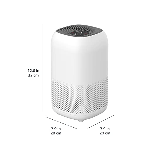 Amazon Basics - Purificatore d'aria, copre ambienti fino a 12 m2, con filtri True HEPA e ai carboni attivi, CADR 100 m3/h, rimuove il 99,97% di allergie a pollini, polvere, fumo, timer, Bianco