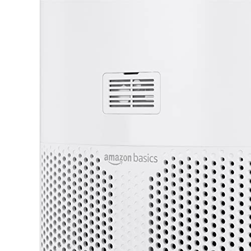 Amazon Basics, Purificatore d'aria, copre ambienti fino a 48 m2, con filtri True HEPA, CADR 400 m3/h, timer, spina europea, Bianco