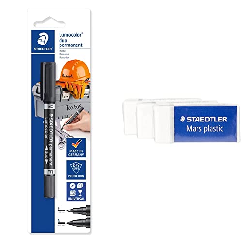 Prodotto 1: Marcatore indelebile con fusto compatto e due punte per scrivere e marcare su ogni superficie. Colore nero.
