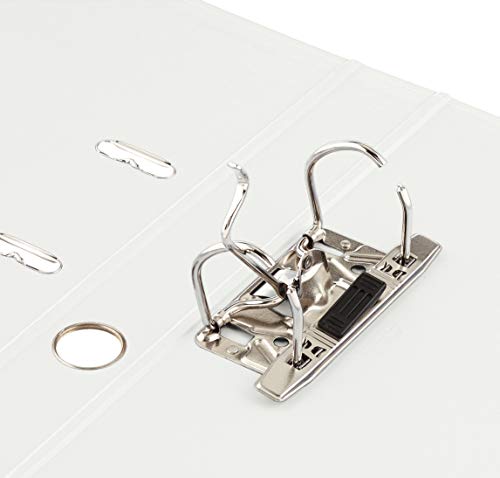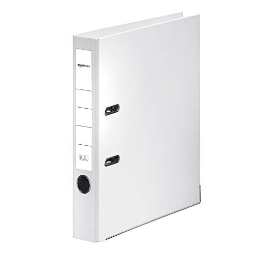Amazon Basics - Registratore a leva con anelli D, copertina in polipropilene, inserto personalizzabile sul dorso, A4, dorso di larghezza 50 mm, bianco