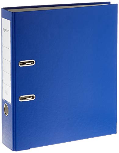 Amazon Basics - Registratore a leva con anelli D, copertina in polipropilene, inserto personalizzabile sul dorso, certificazione FSC, A4, dorso di larghezza 80 mm, blu