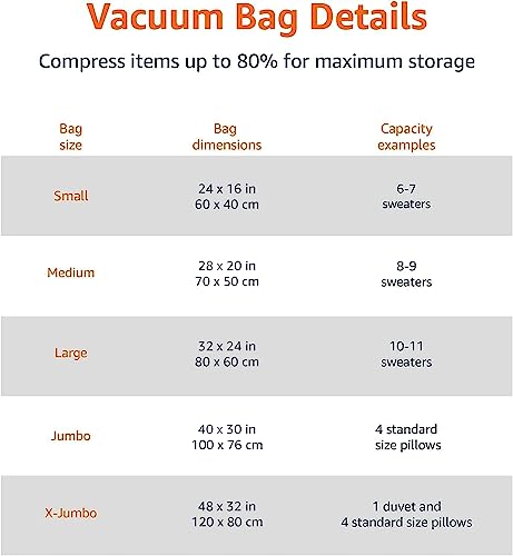 Confezione di 6 sacchetti di stoccaggio sottovuoto di dimensioni assortite per riporre vestiti fuori stagione, asciugamani, lenzuola e altro