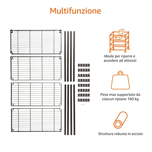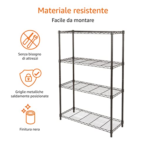 Amazon Basics - Scaffalatura a 4 ripiani, Nero, 35.6 cm D x 91.4 cm W x 137.2 cm H