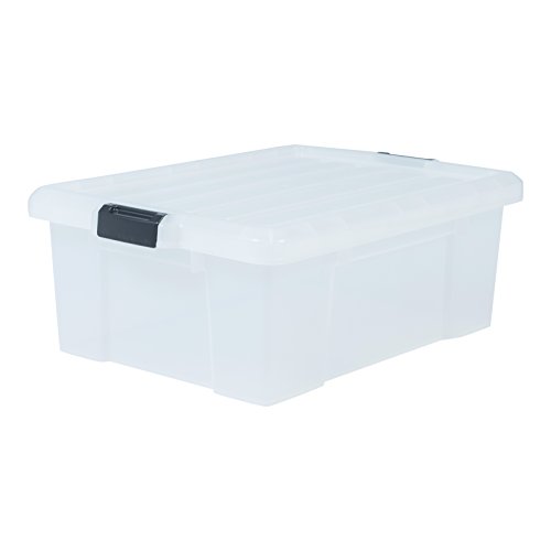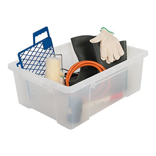 Amazon Basics, Set di 3 scatole fai da te, 43 L, con chiusura a scatto, impilabile, Garage - Power Box SK-430 - Trasparente