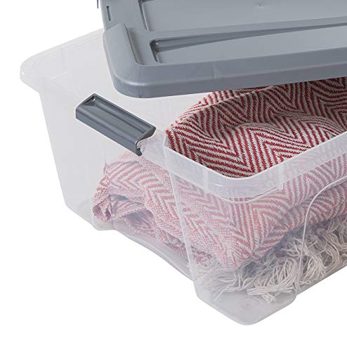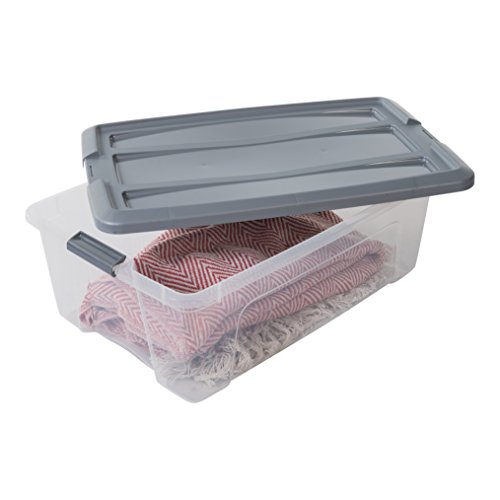 Amazon Basics, Set di 6 scatole di immagazzinaggio, 30 L, con chiusura a scatto, impilabile, soggiorno, camera da letto, garage - New Top Box NTB-30 - Argenteo / Trasparente