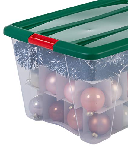 Amazon Basics, Scatole, organizer natalizio in plastica, set di 2, 2 x 45 L, maniglie a clip, robusto e multiuso, soggiorno, camera da letto, ufficio - New Top Box NTB-45 - Verde