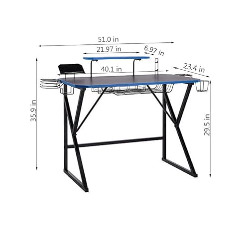 Amazon Basics - Scrivania per computer e gaming con scomparto per controller, cuffie e altoparlanti, colore blu