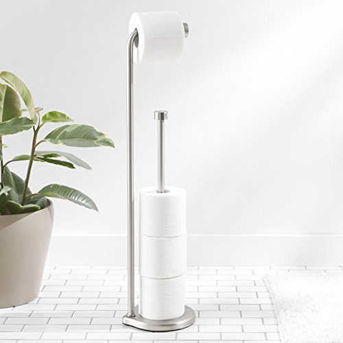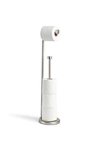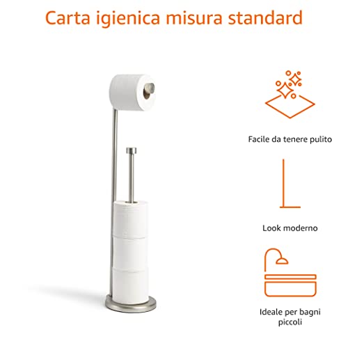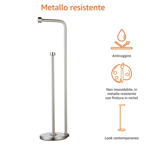 Amazon Basics - Supporto portarotolo di carta igienica con asta di riserva, Nichel