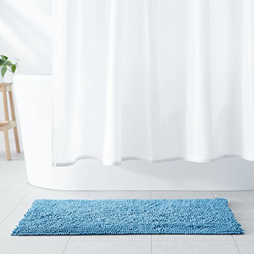 Amazon Basics - Tappeto da bagno in microfibra, a pelo lungo, antiscivolo, 0,53 x 0,86 m, Blu lago