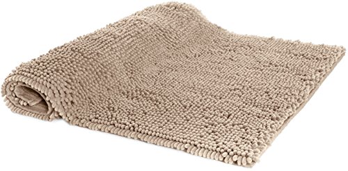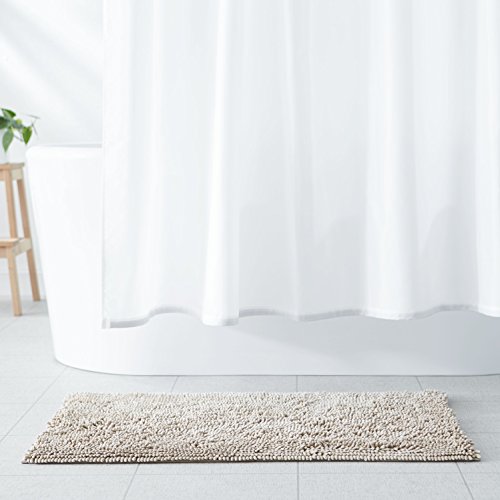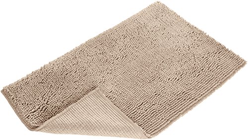 Amazon Basics - Tappeto da bagno in microfibra, a pelo lungo, antiscivolo, 0,53 x 0,86 m, Beige