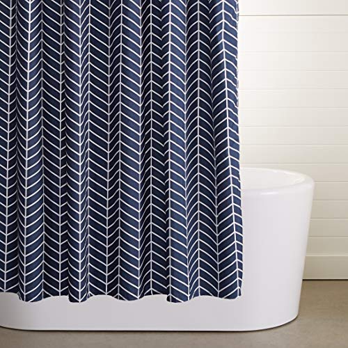 Amazon Basics - Tenda da doccia con stampa a lisca di pesce, blu navy