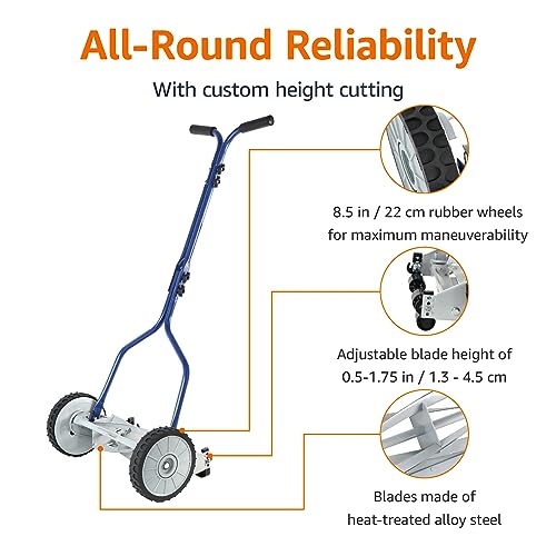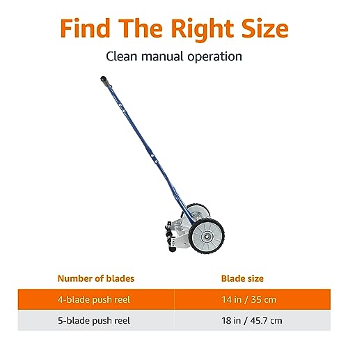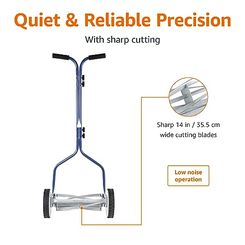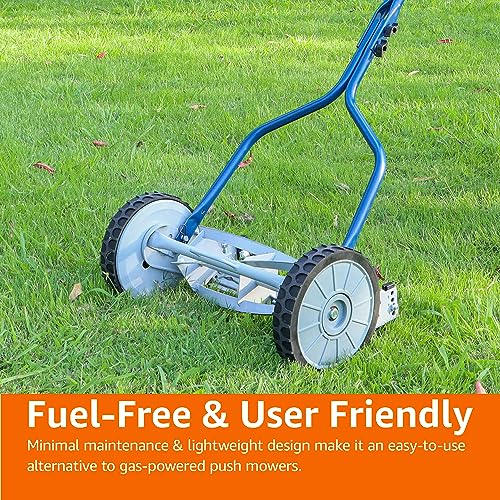 Amazon Basics Tosaerba a spinta con ruote e 4 lame da 35,5 cm, blu