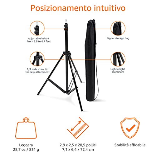 Amazon Basics - Treppiede leggero, in alluminio, 2.04 m, con borsa per il trasporto, confezione da 1, Nero