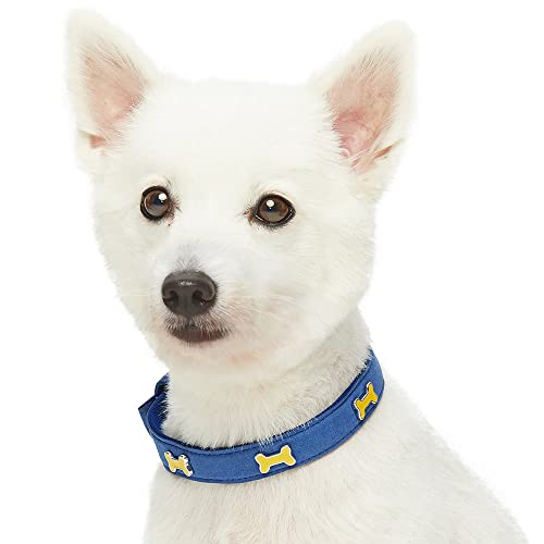 Amazon Brand - Umi, Collare per Cani con Motivo con ossi, Blu Federal, con Fibbia in Metallo, Collo 23-32 cm, per Cani di Taglia Piccola