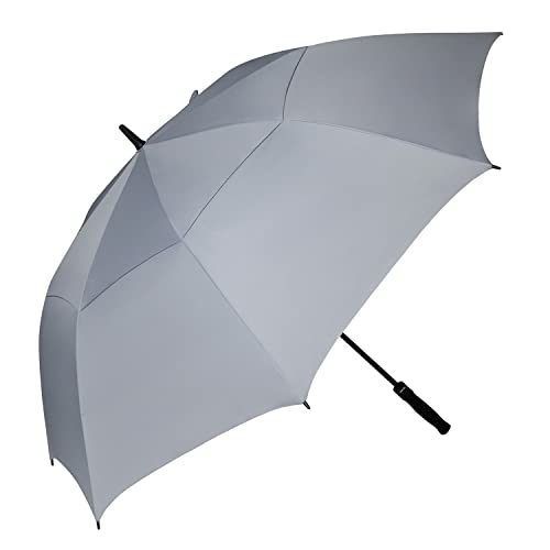 Amazon Brand - Eono Ombrello da Golf Aperto Automatico, 58 inch, Large Golf Umbrella, Ombrello Grande, Disegno Antivento Super Resistente, Umbrella di Viaggio con Custodia Impermeabile - Grigio
