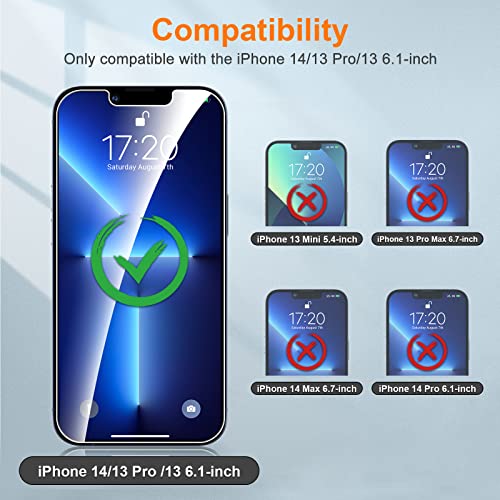 Protezione in vetro ad alta definizione: la protezione in vetro temperato per iPhone 14/13/13 Pro con uno spessore dello schermo di soli 0,33 mm promette una buona qualità dell'immagine sul vostro iPhone 14/13/13 Pro, in modo da non influenzare la registrazione video e con una custodia per cellulare.