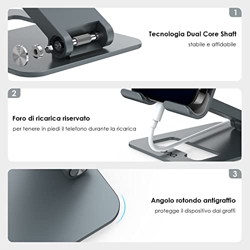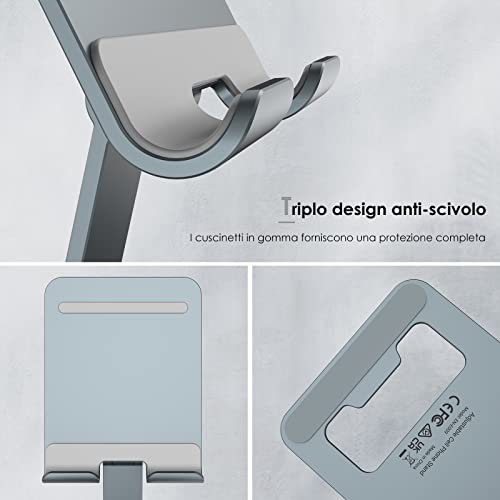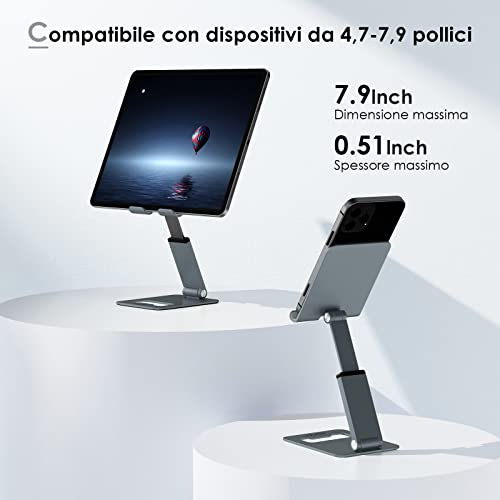 Amazon Brand - Eono Supporto pieghevole per cellulare, multi-angolo/altezza regolabile in alluminio, supporto da scrivania per iPhone 13 Pro Max Mini 12 11, iPad Mini 5 4 e 4,7 -7,9 pollici - Gris