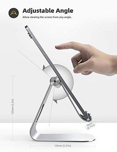 Amazon Brand - Eono Supporto Tablet Regolabile, Alluminio Porta Tablet Stand Universale ipad Dock per iPad 9, iPad Pro 9.7/10.5/11/12.9, Air 2 3 4, Mini 6, iPhone, Switch, Galaxy Tab (5"-13")- Argento