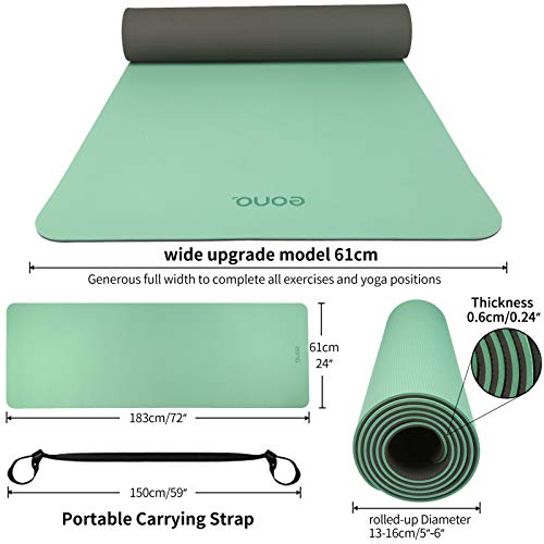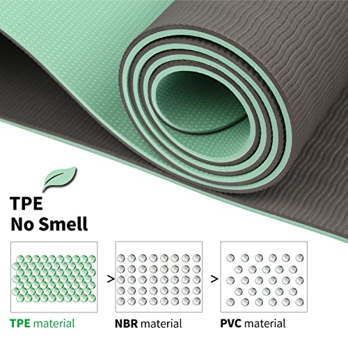 Amazon Brand - Eono Tappetino Yoga Mat Tappetino Fitness Tappeto Palestra Antiscivolo - Verde Menta