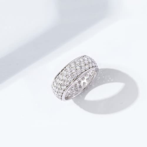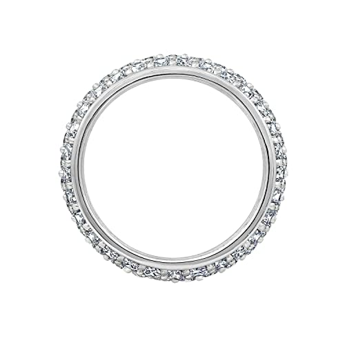 Placcato .925 anello in argento sterling adornato con tre file di taglio brillante rotondo pavimentare set Infinite Elements Cubic Zirconia