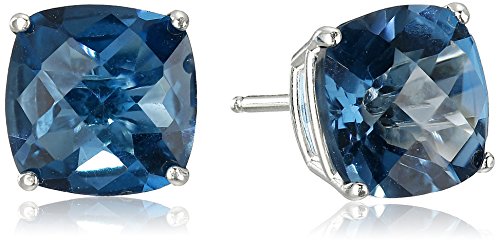 Amazon Collection Orecchini da donna in argento Sterling 925, taglio a cuscino, con pietra portafortuna di dicembre, topazio blu londinese