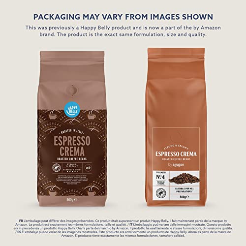 By Amazon Espresso Crema in chicchi, tostatura chiara, 500g - Certificato Rainforest Alliance, Caffè in grani (Precedentemente marchio Happy Belly)